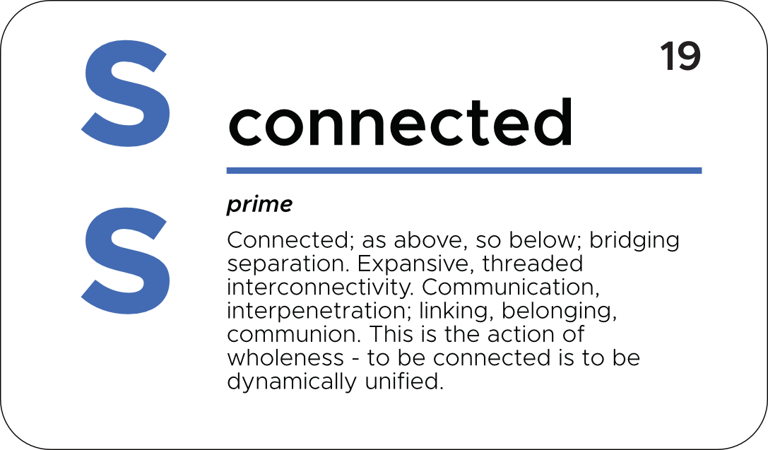 S is where we are connected, where we can connect things, and is the action of plugging in to the systems of life, living and being.