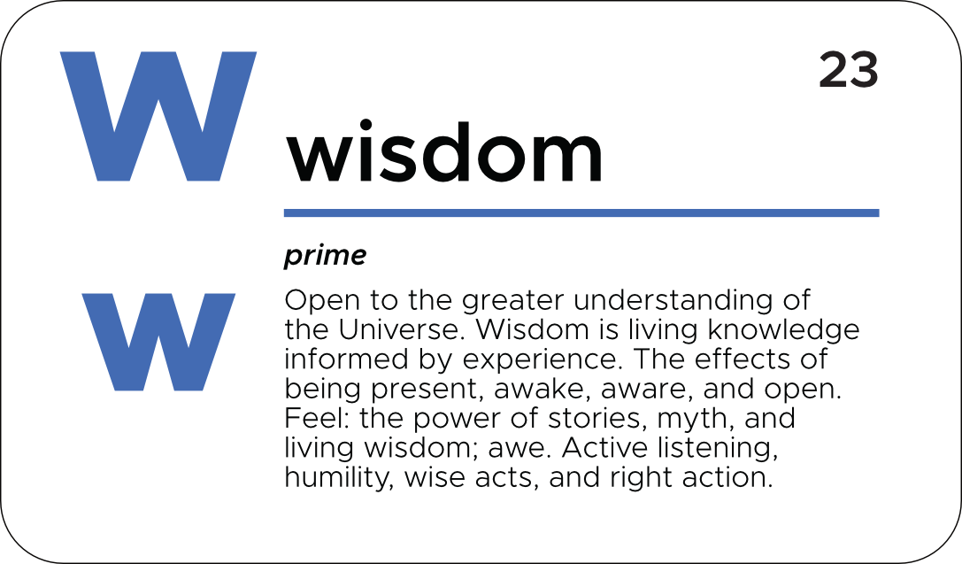 When I first heard the letter W, it was openness to a greater understanding. In our language set, you will see that shortened to ‘understanding’. This sense of an open portal to the entire universe, this needed curiosity that impels the attention towards that which could be known. This is not about knowing it all already: it is more humble than that.