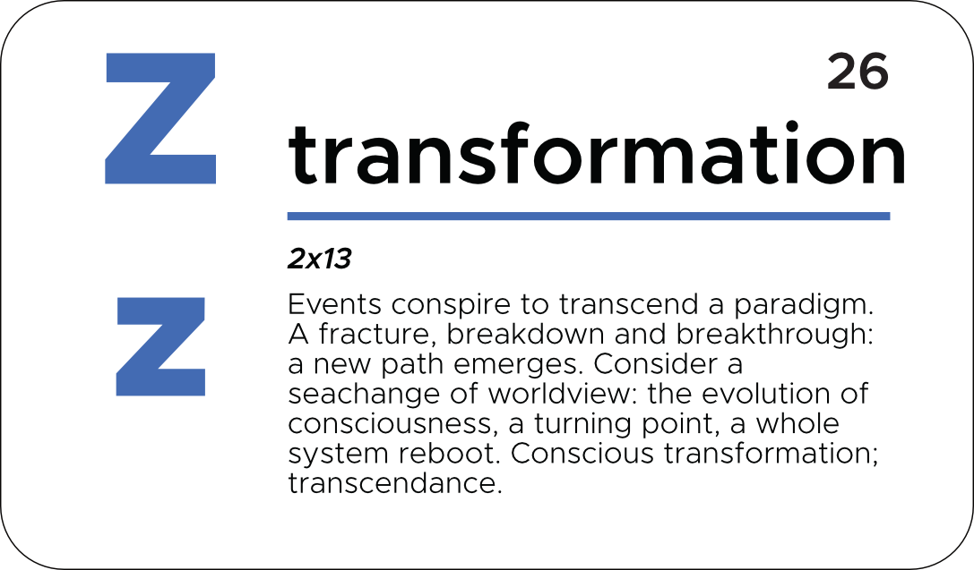 As we begin to realize ourselves more fully in the light and consciousness that we are, the emergence of the Truth of consciousness will further inform the depth and richness of our circumstance, identity, and how that relates to our world as it is. It is up to each of us to feel into the right timing of our own journey; however there is a critical timing, and critical path towards a collective awakening. It is symbolized by the last letter of the alphabet.